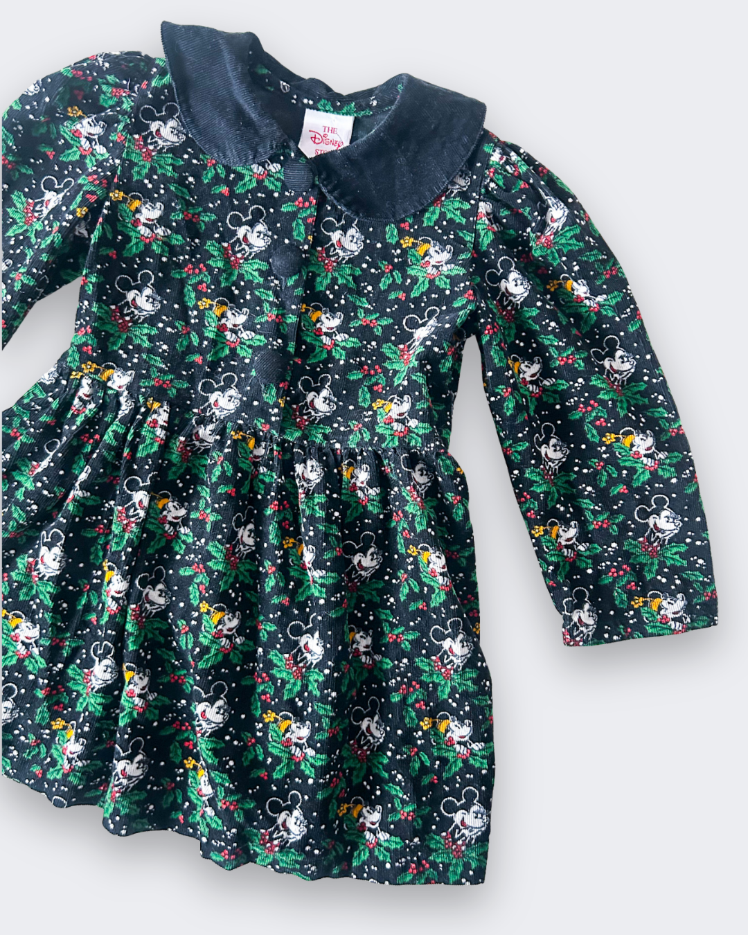 Super cool vintage Disney Christmas dress, featuring Mickey & Minnie with snow & holly all...
