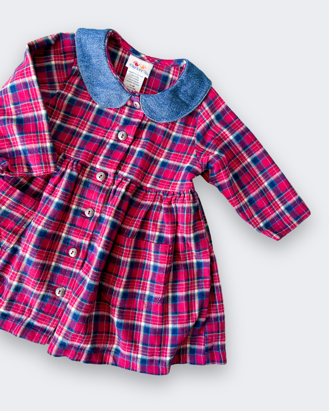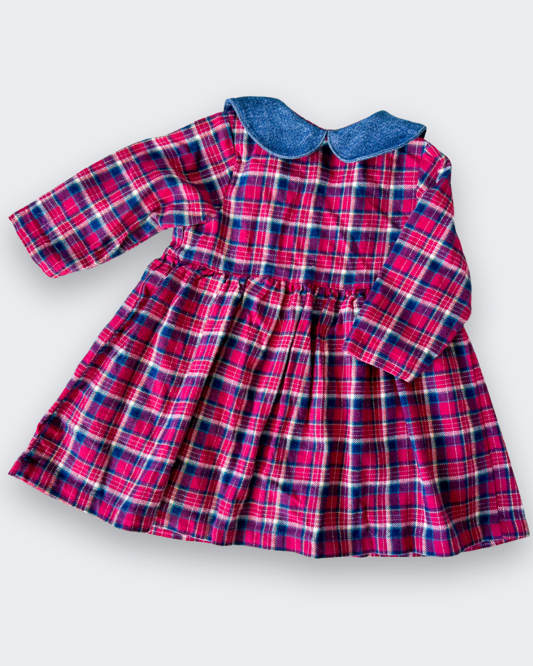 – Sold OutPretty vintage soft brushed cotton, tartan check dress with sweet denim Peter Pan collar &...